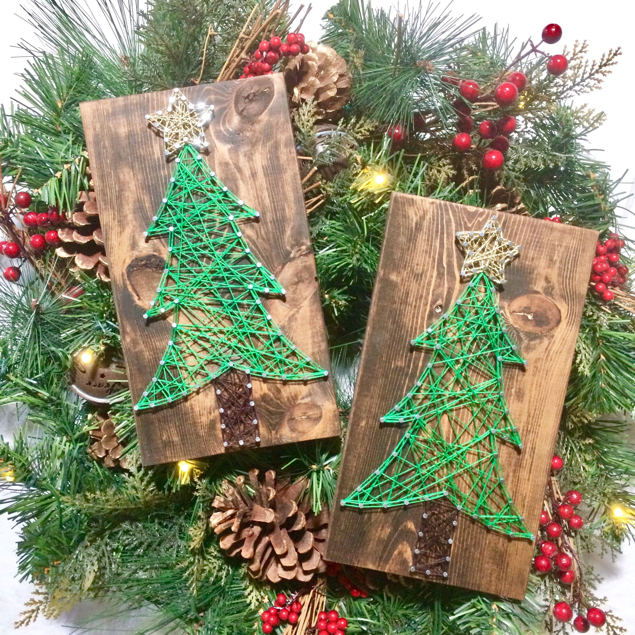 Mini String Art Christmas Trees Rustic Christmas Farmhouse Decor Holiday Seasonal Decor Happy Holidays Merry Christmas