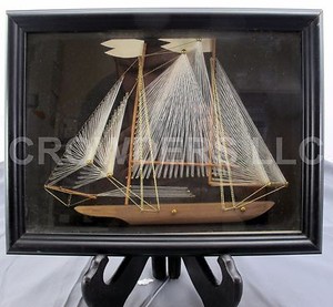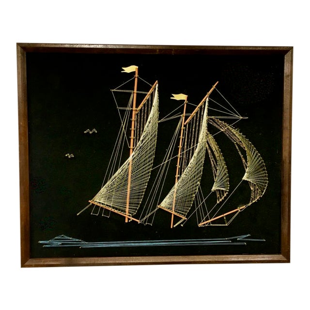 1970s Vintage Framed Sailing Ship String Art