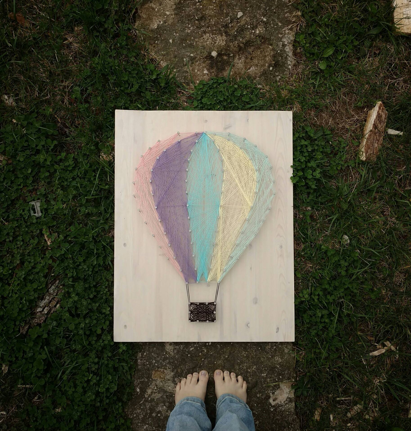 Balloon string art. Leave an inch or so of the string dry so you can tie it to the finished string balloon once both pieces are dry. Hot air balloon is one of the most beautiful figures to make a string art. String art for kids.