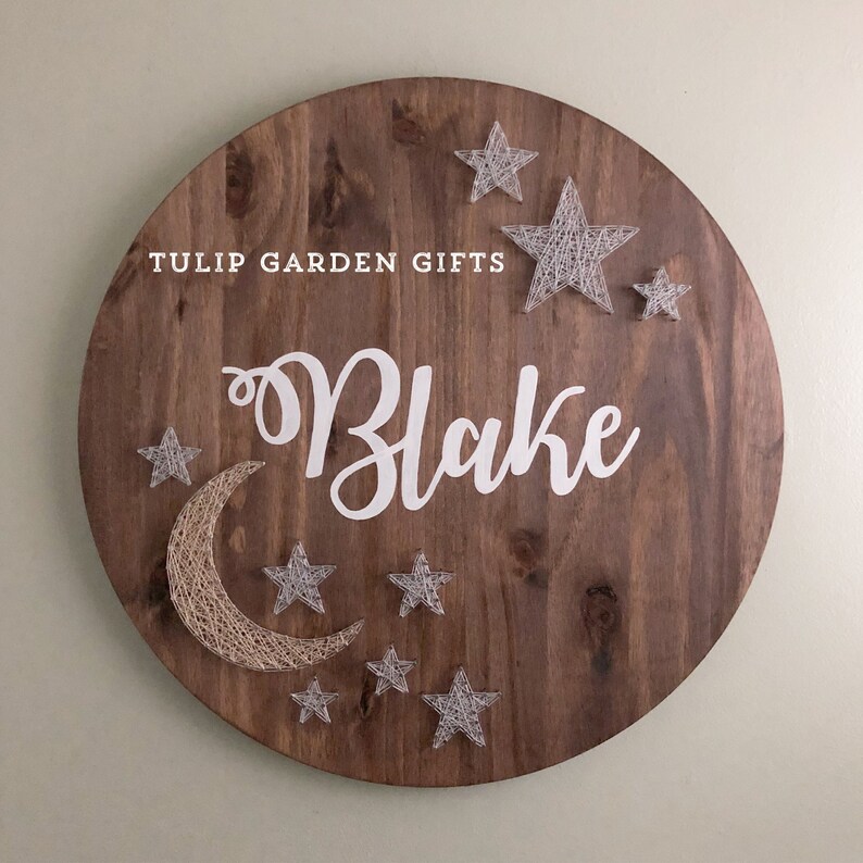Large Name String Art Sign Barrel Style Sign String Art Name Round Moon And Stars String Art Nursery String Art Round Nursery Name Sign