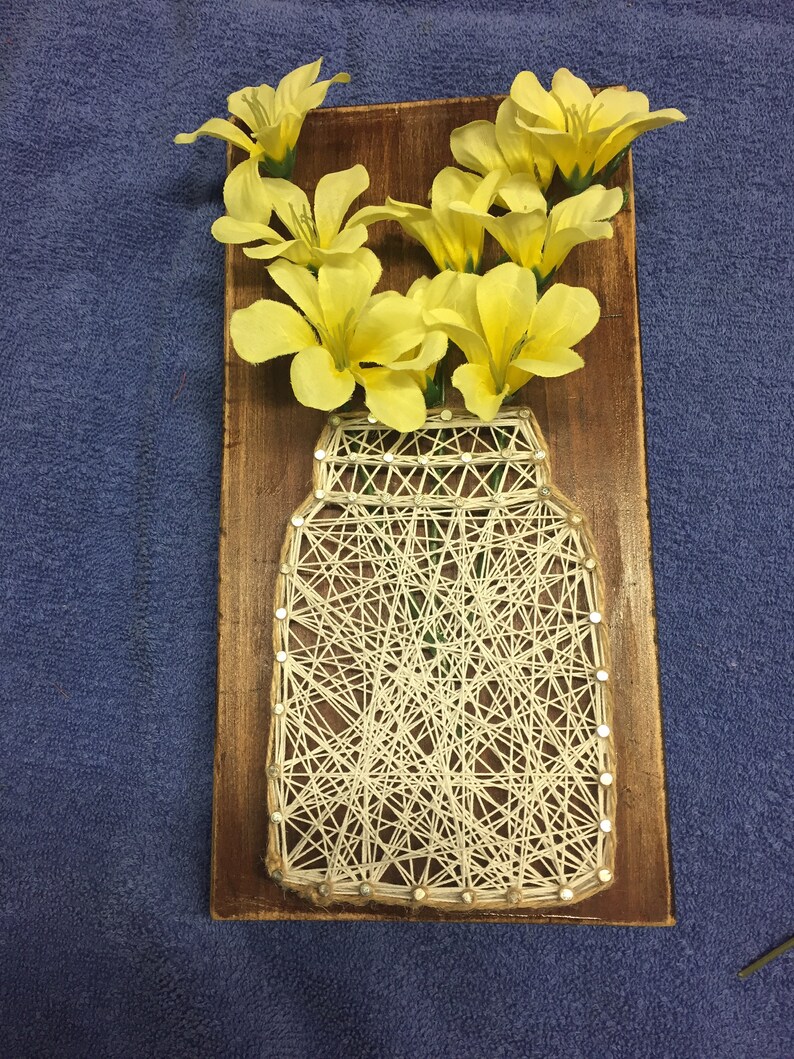 Diy String Art Vase With Faux Flowers Wall Decor