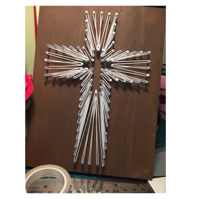 Cross string art. This step by step tutorial will show you how to make your own string art. I have created a string art cross and flame picture at the request of a member of the united methodist church. As far as the size of each thing you get two big cardboard backings that are about half the size of a sheet of paper each and four small cardboard backings that are about 14 size a sheet of paper.