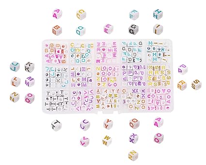 Mandala Crafts Alphabet Cube Letter Beads For Jewelry Making Kandi Bracelets Necklaces Plastic Pony Beads Box Kit For String Art Color On White