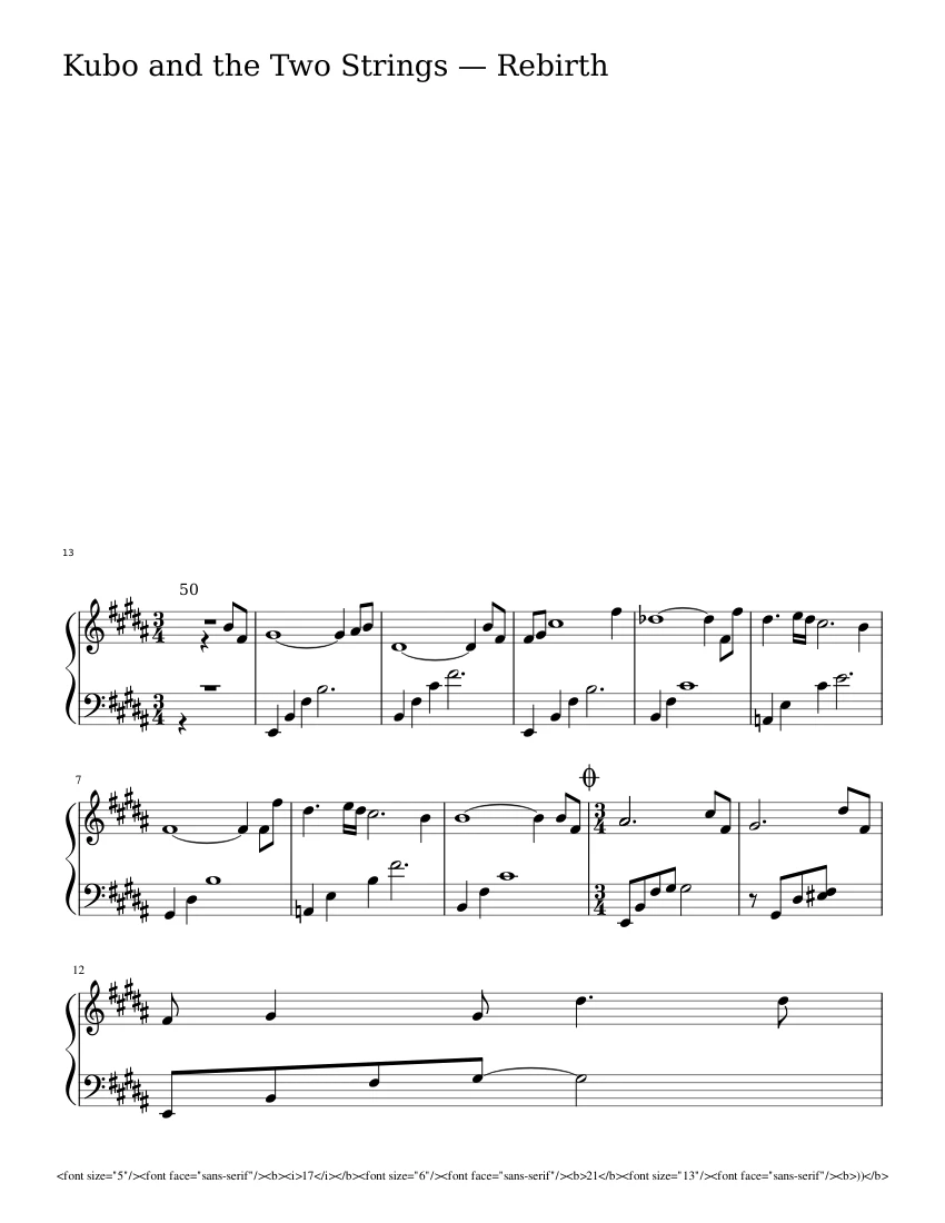 Kubo And The Two Strings Rebirth Sheet Music For Piano