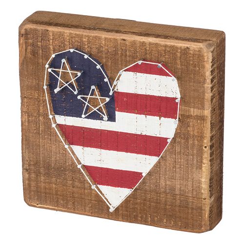American Flag Heart String Box Wall Art