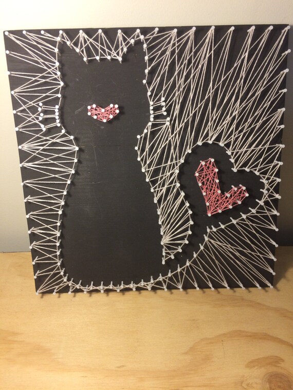 String Art Board Cat Outline Negative Space Kitten Pet